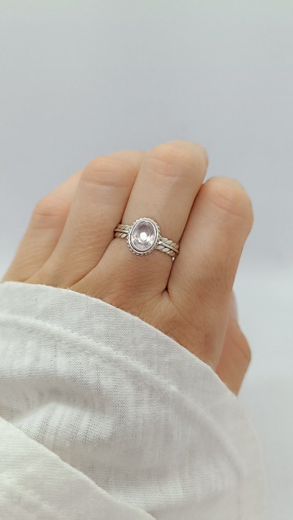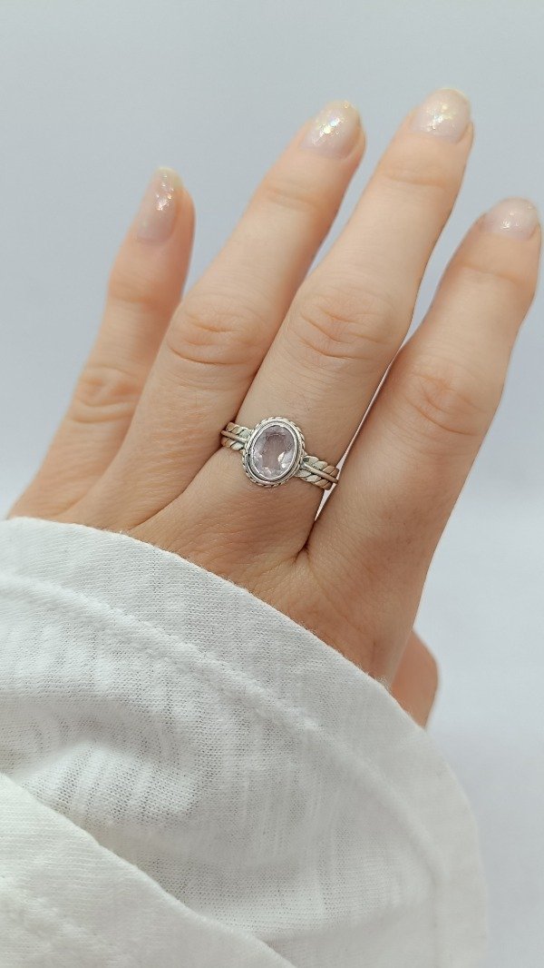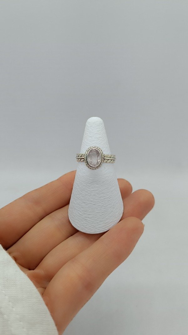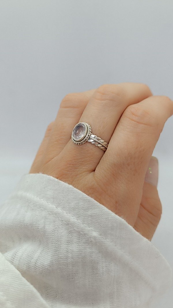 Anillo de plata labrado con Engarce de Cuarzo Rosa.