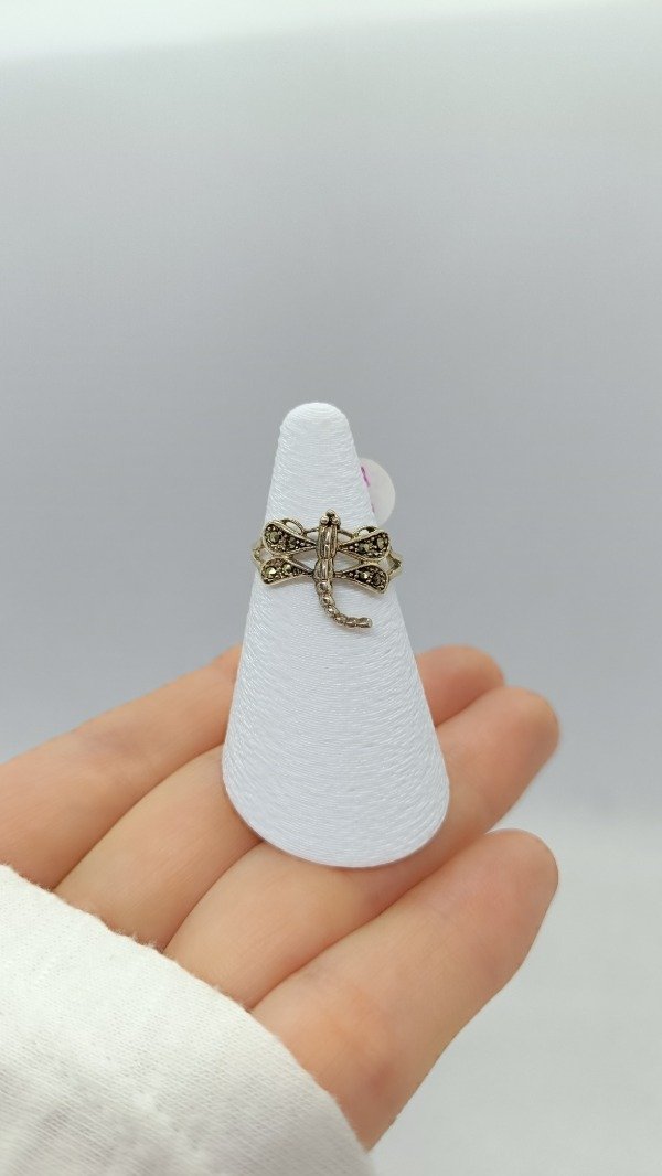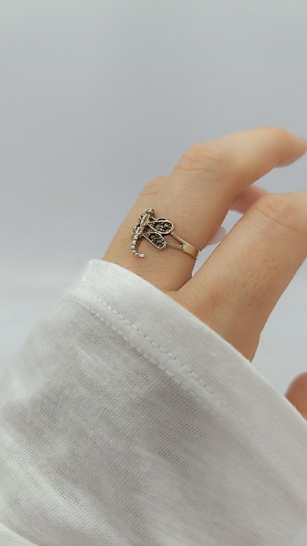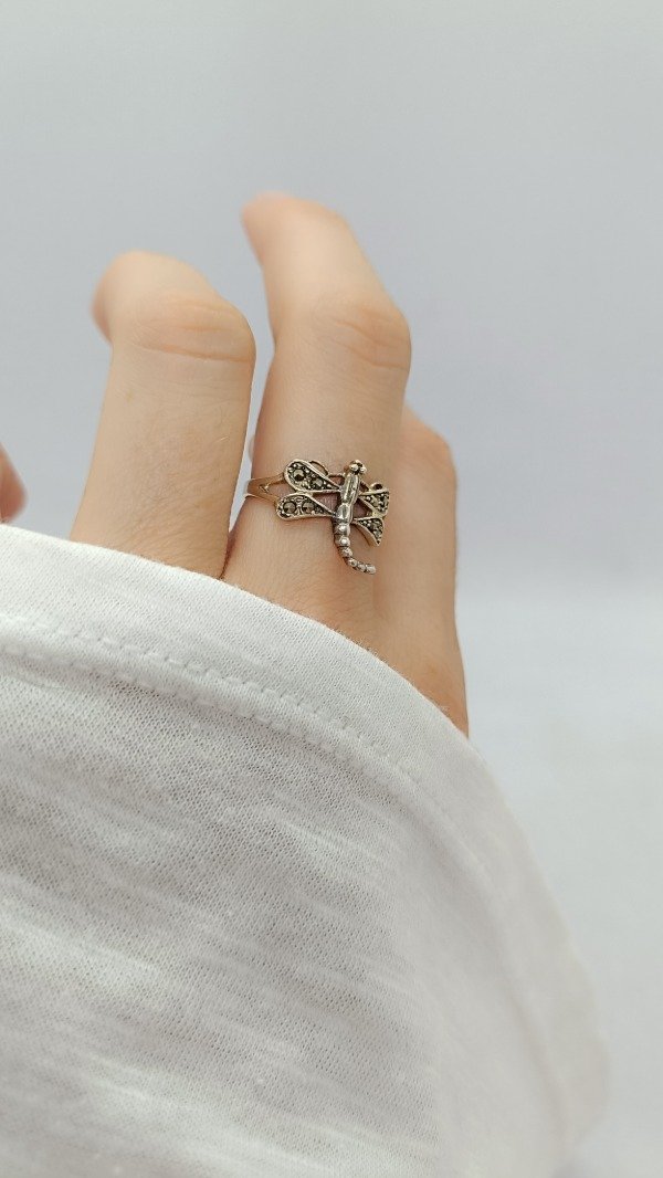 Anillo de plata maciza, con engarces de marquesitas negras.