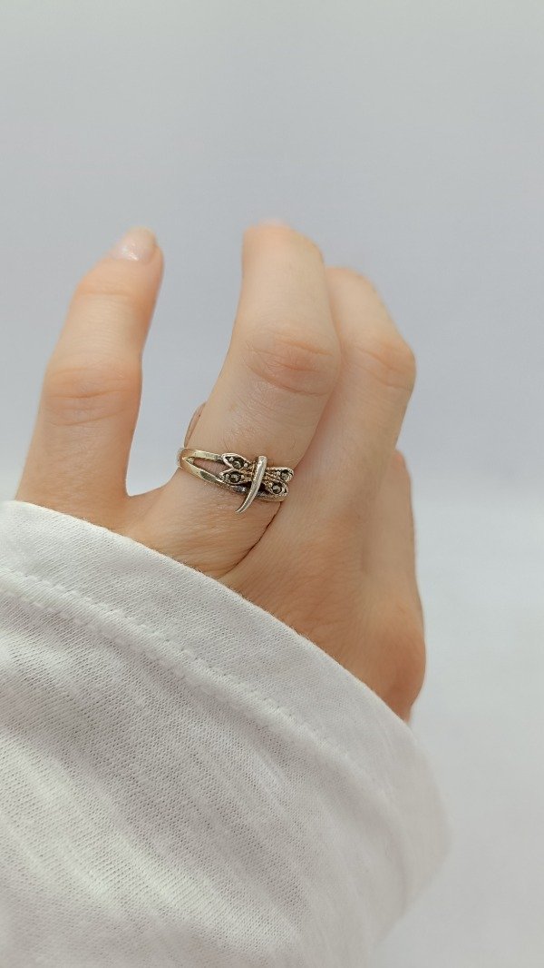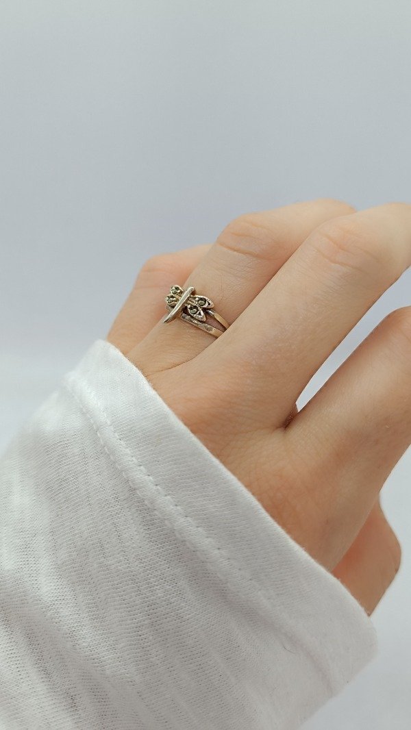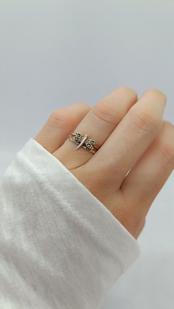Anillo de plata maciza, con engarces de marquesitas negras.