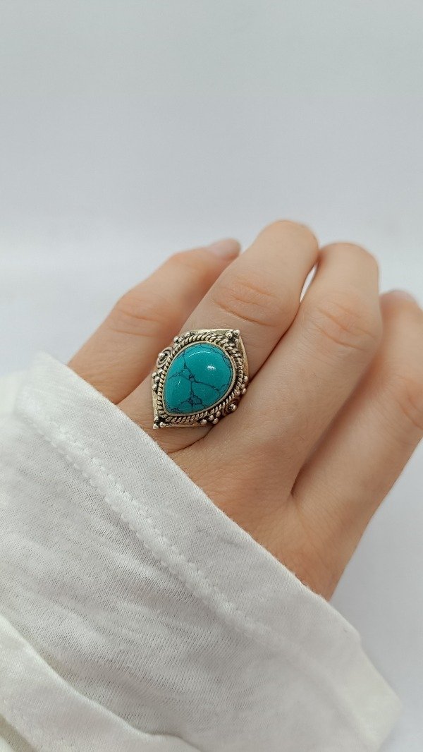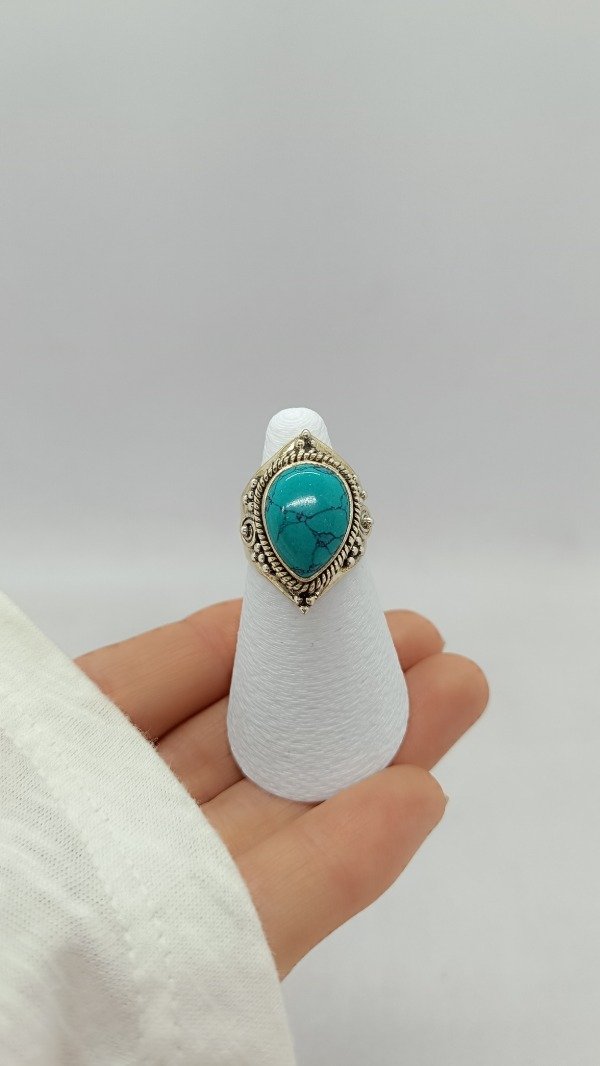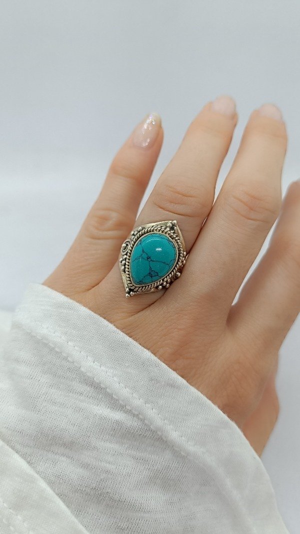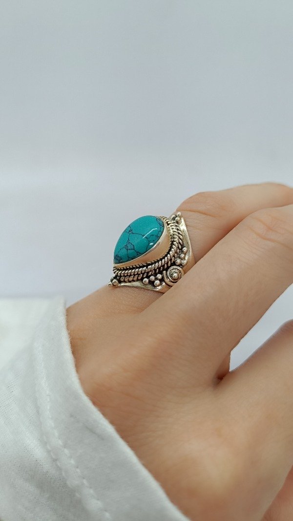 Anillo de plata labrado, con engarce de piedra natural "Tuequesa"