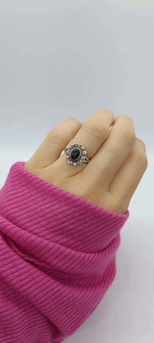 Hermoso anillo fabricado en plata 925 con hermoso diseño y ónix natural.