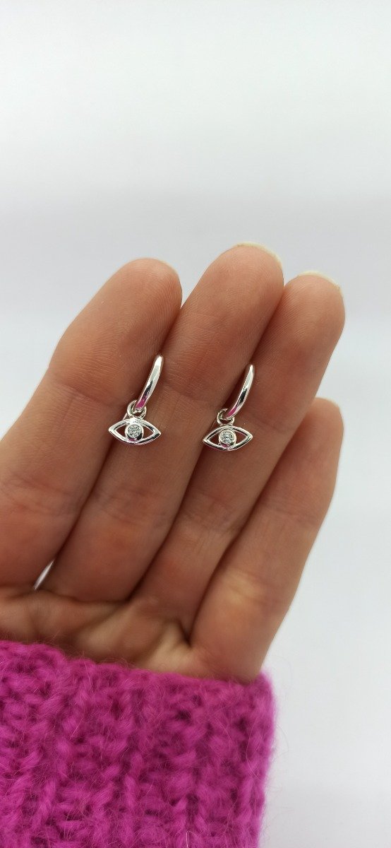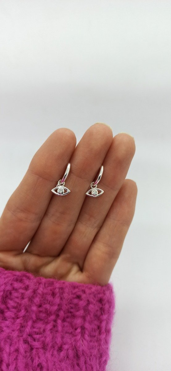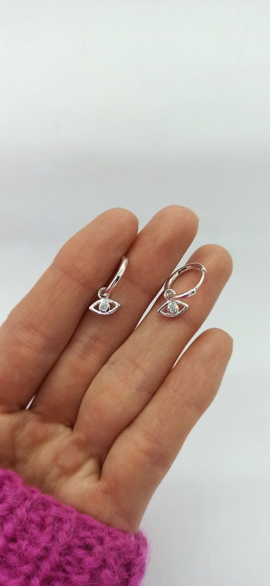 Hermosas argollitas de plata con ojito turco de cubic.