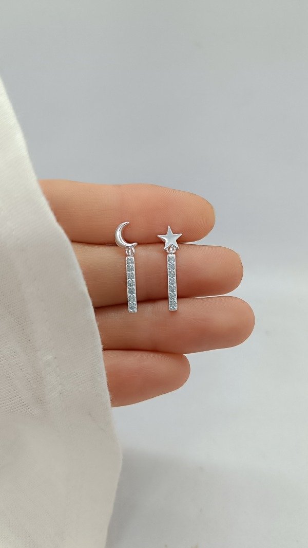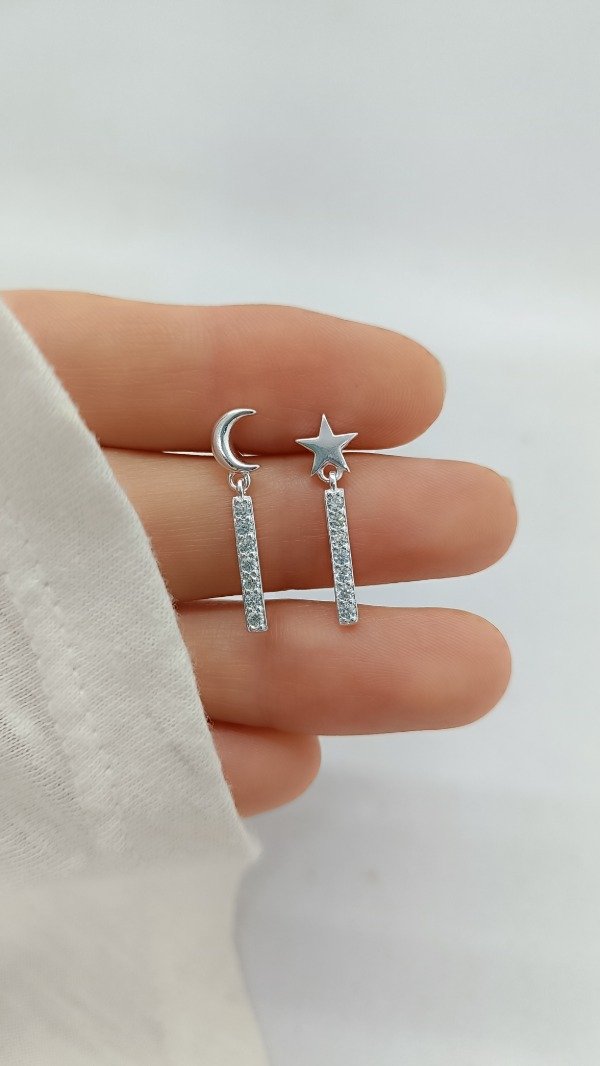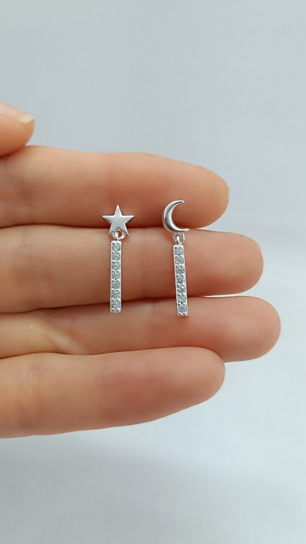 Aros de plata colgante con cubic, con detalle de Luna y estrella.