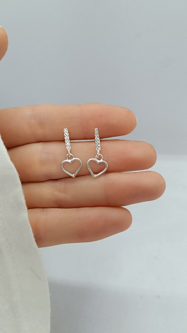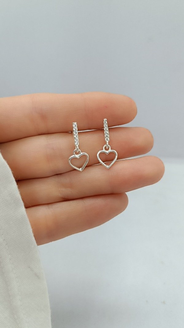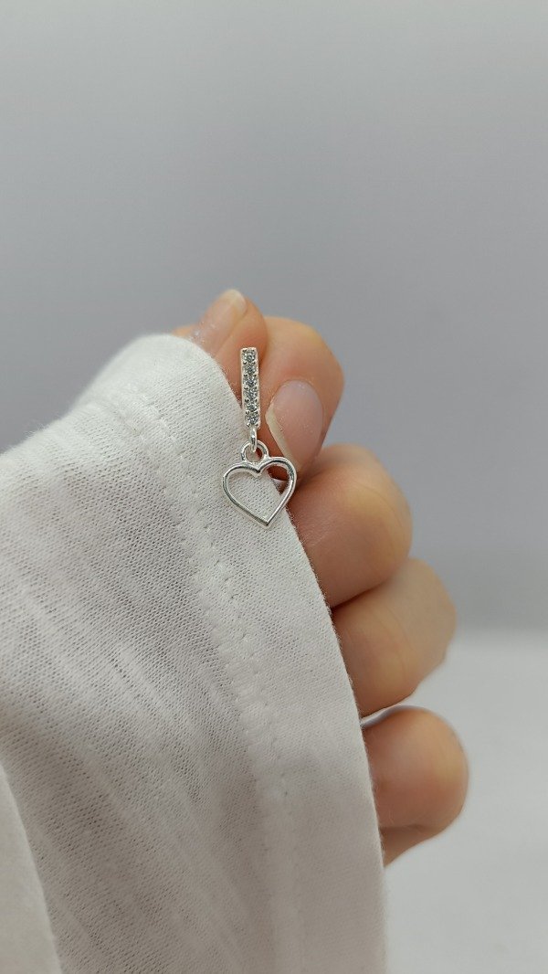Aros de plata con barrita con engarces de microcubic y dije de corazón.