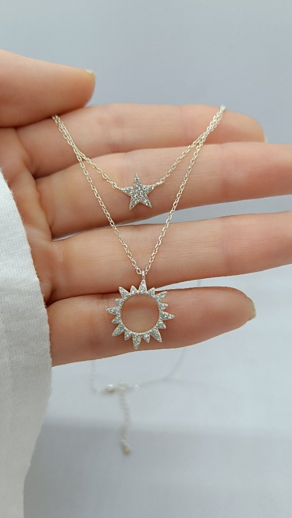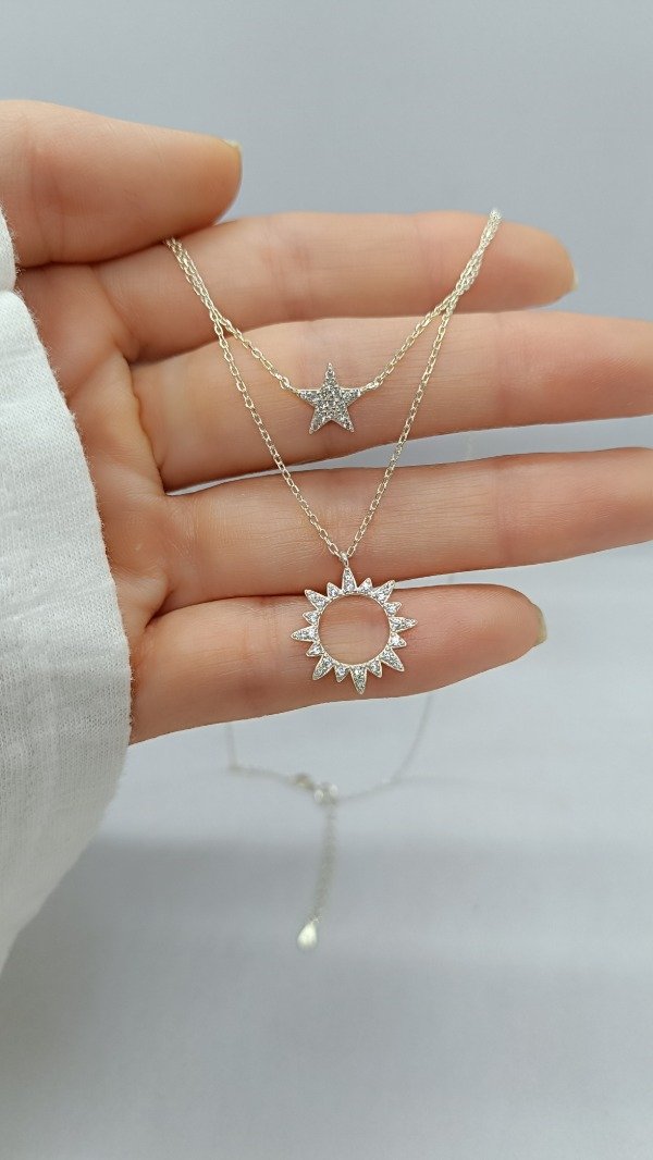 Gargantilla doble hecha en plata, con engarces de microcubic.