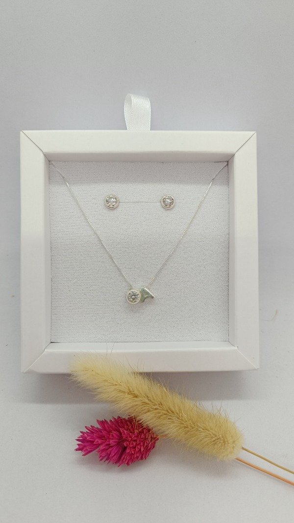 馃巹 Conjunto de Plata: Cadenita 40cm + Inicial a elecci贸n + Punto de Luz + Aros