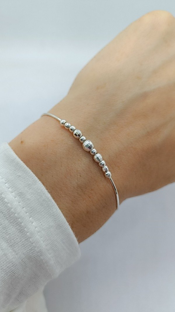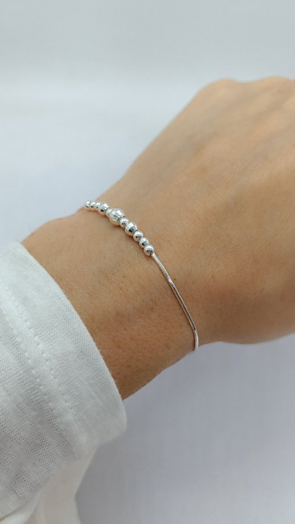Pulseras de plata con dijes en forma de Bolas esférica, estilo bolas de boliche.