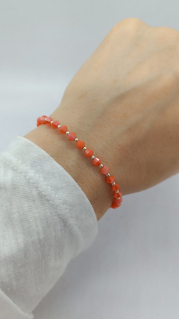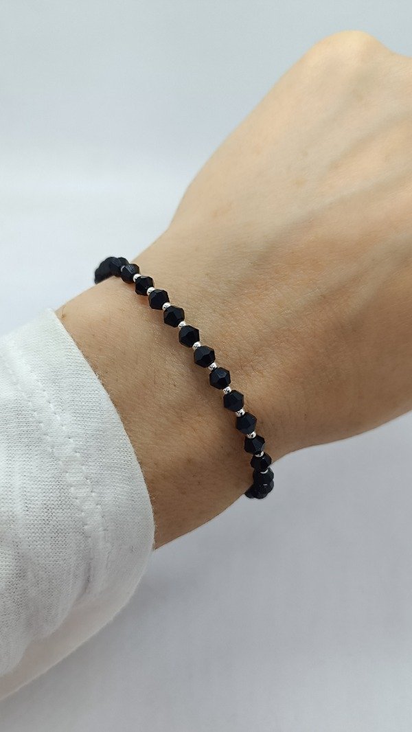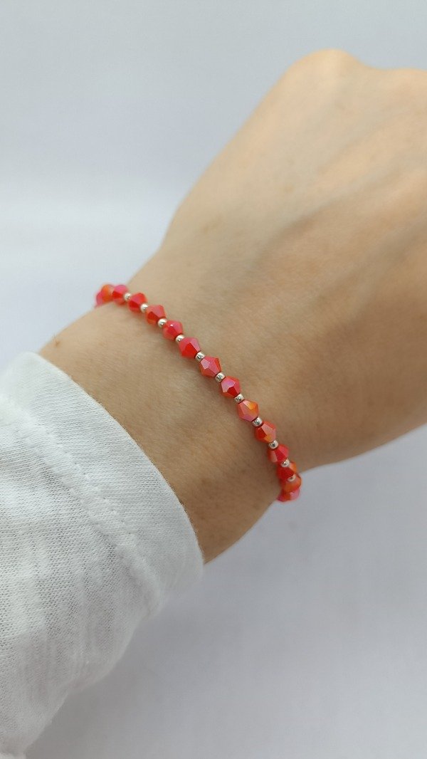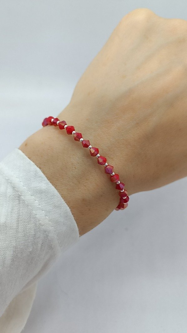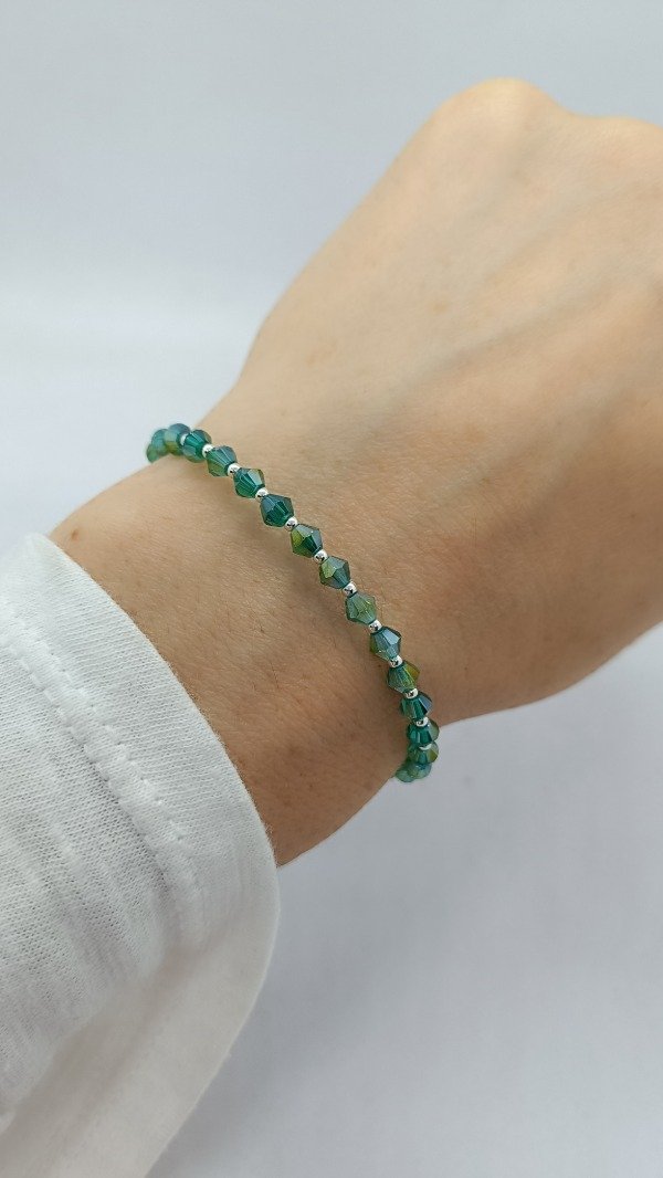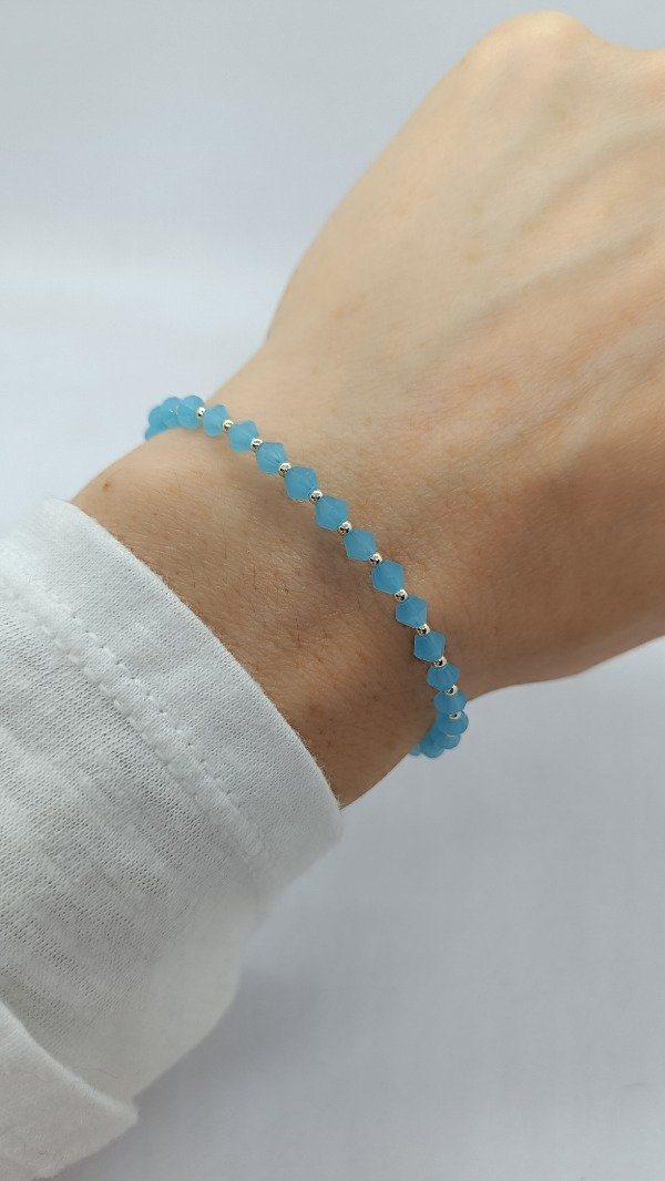Pulsera de Cristales bicónico Checo, con bolitas de plata de 2mm.