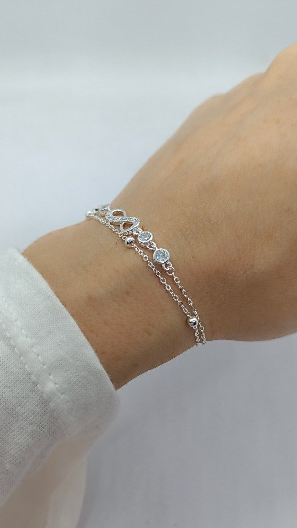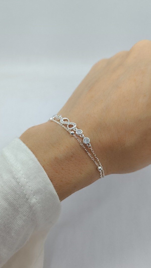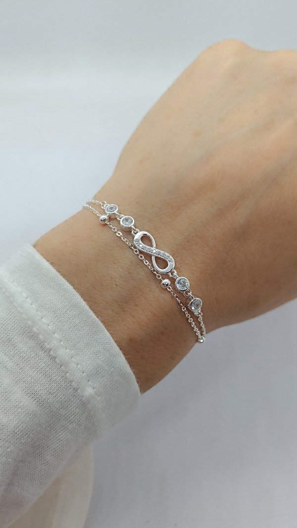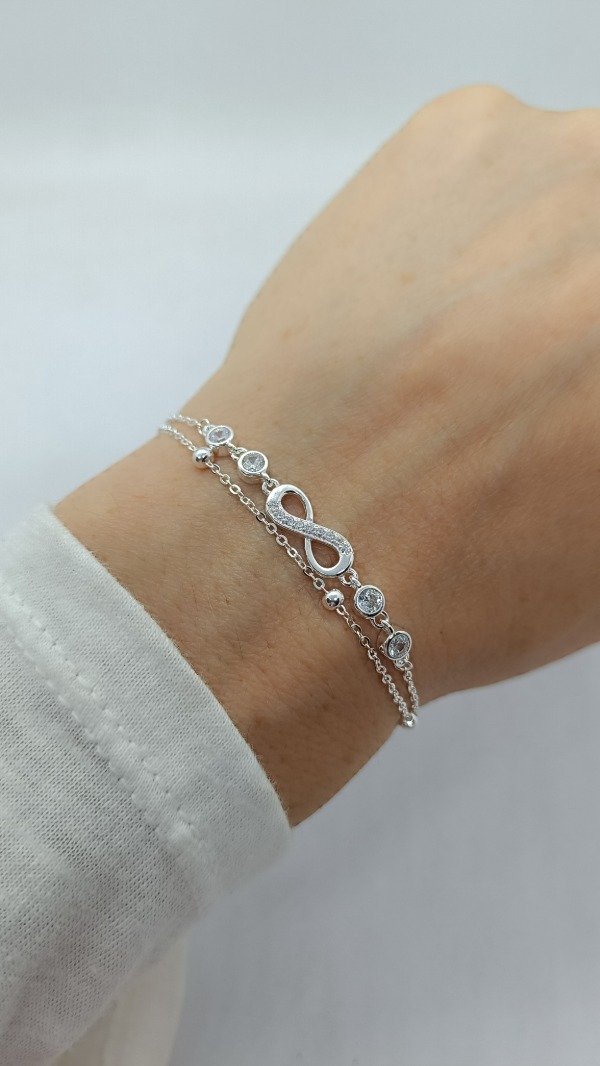 Pulsera de Plata Doble, con dije de Infiniti con engarces de microcubics y Cristales.