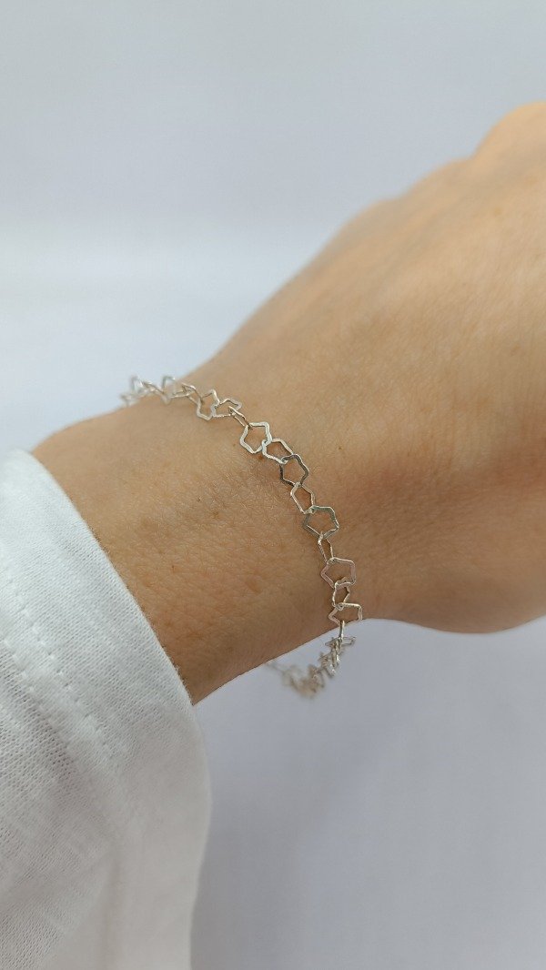 Pulsera de plata con estrellitas de plata lizas engarzadas entre si.