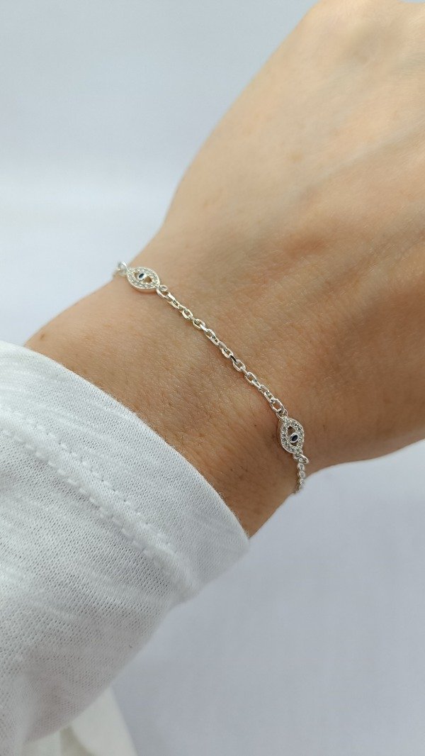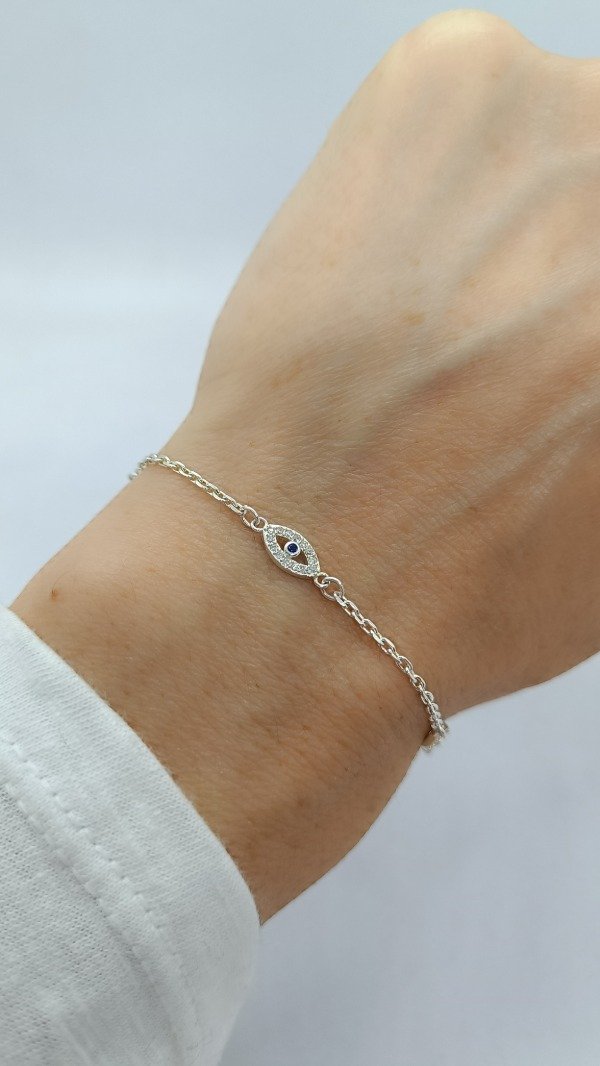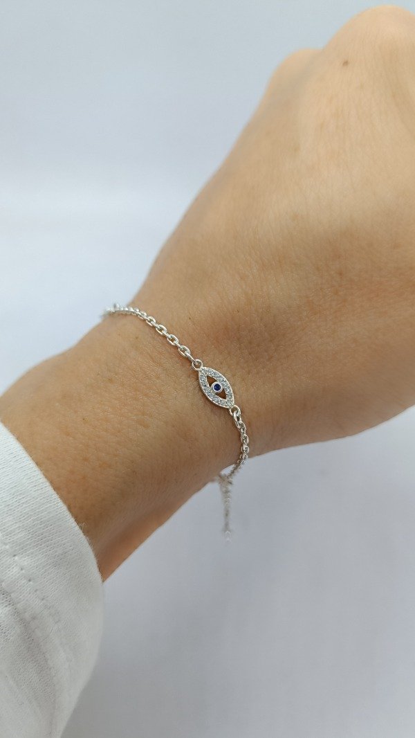 Pulsera de plata con dijes del tercer ojo con engarces de cubics